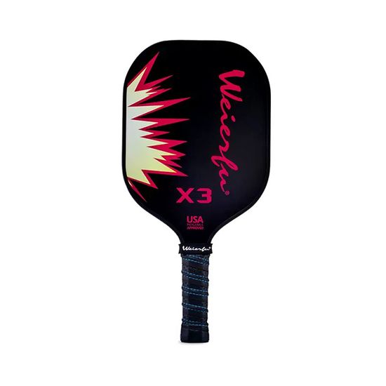 Dòng vợt Pickleball Weierfu X được sản xuất từ sợi Thuỷ Tinh, bề mặt được in UV nhám làm cho vợt ma sát tốt hơn, kiểm soát bóng mạnh hơn, loại vợt này phù hợp để nâng cao hơn nữa kỹ năng bóng.